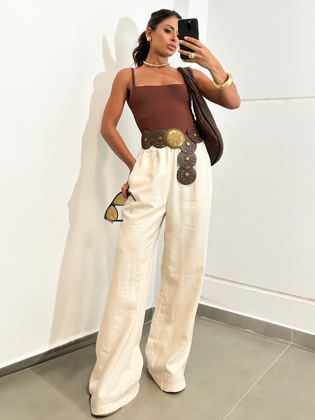 A Calça Charlotte Linho é perfeita para quem busca praticidade e elegância no dia a dia.