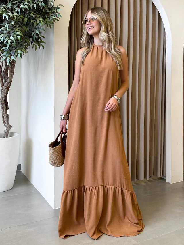 Sugestão de uso: Combine com sandálias de salto para eventos especiais ou com rasteirinhas para produções mais casuais. O Vestido Dafne Marrom é a escolha ideal para quem quer unir estilo, praticidade e conforto em um só look.
